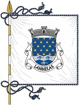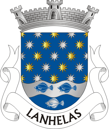Brasão: escudo de azul polvilhado de luzeiros de ouro e prata; campanha ondada, cortada de prata e azul, carregada de três solhas de um no outro. Coroa mural de prata de três torres. Listel branco, com a legenda a negro: “LANHELAS”.